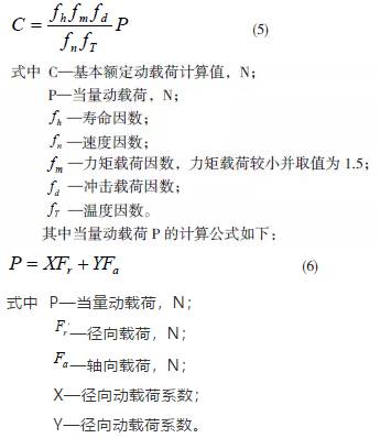將選型軸承的參數代入(5)、(6)中直接得出基本額定動載荷C,而選型軸承的動載荷Cr 必須大于基本額定動載荷C 才能滿足設計要求。