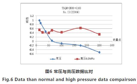 ③高壓相對于常壓整體線性較為平穩,而且線性誤差有向理想誤差曲線靠攏的趨勢。