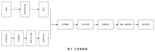 1.1 偏心爐+LF 爐雙聯冶煉工藝,鋼包冷調、熱裝燃氣流量計工藝路線圖簡介如圖 1。