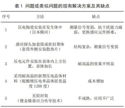 3) 當前技術(shù)系統(tǒng)存在的問題。 由于目前使用的傳感器檢測感應元件為壓電陶瓷,其極化時居里溫度大約420 ~ 460℃,因此只能在低于 240℃介質(zhì)中使用,一旦被測量介質(zhì)的溫度高于 240℃,液態(tài)液化氣流量計傳感器便會因壓電陶瓷達到居里點,絕緣電阻降低,壓電信號變?nèi)醵А?br /> 4)問題或類似問題的現(xiàn)有解決方案及其缺點(見表 1)。