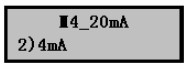 在20mA參數設置菜單按擊▼鍵進入4mA參數設置菜單,按擊OK鍵進入設置,方法同上。